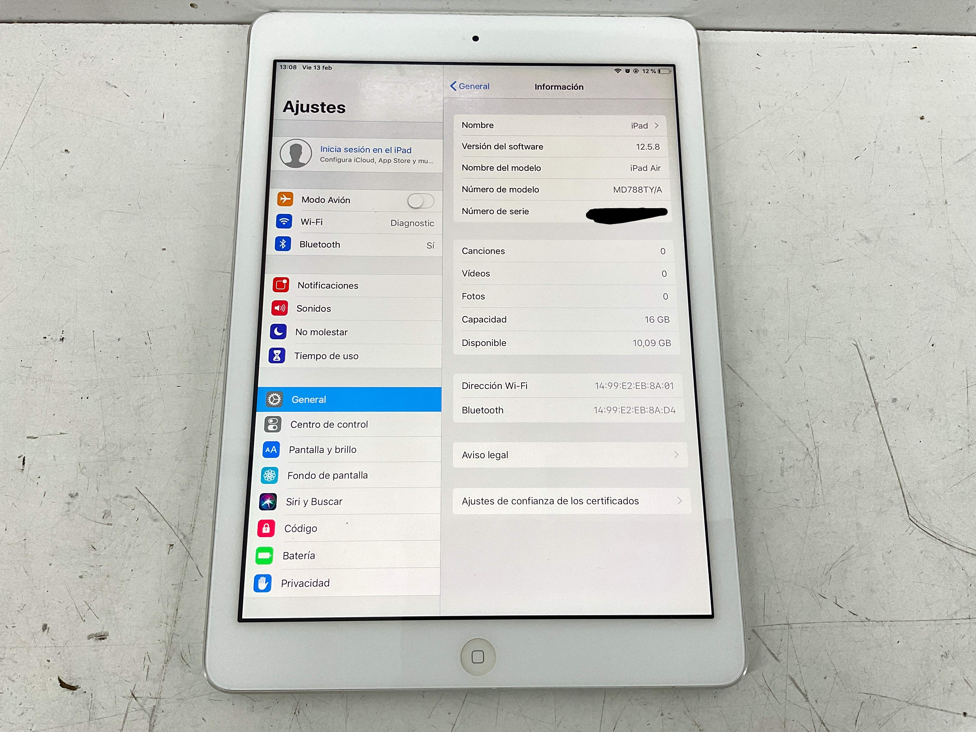 - modelo: ipad air (wi-fi) (a1474) 16gb