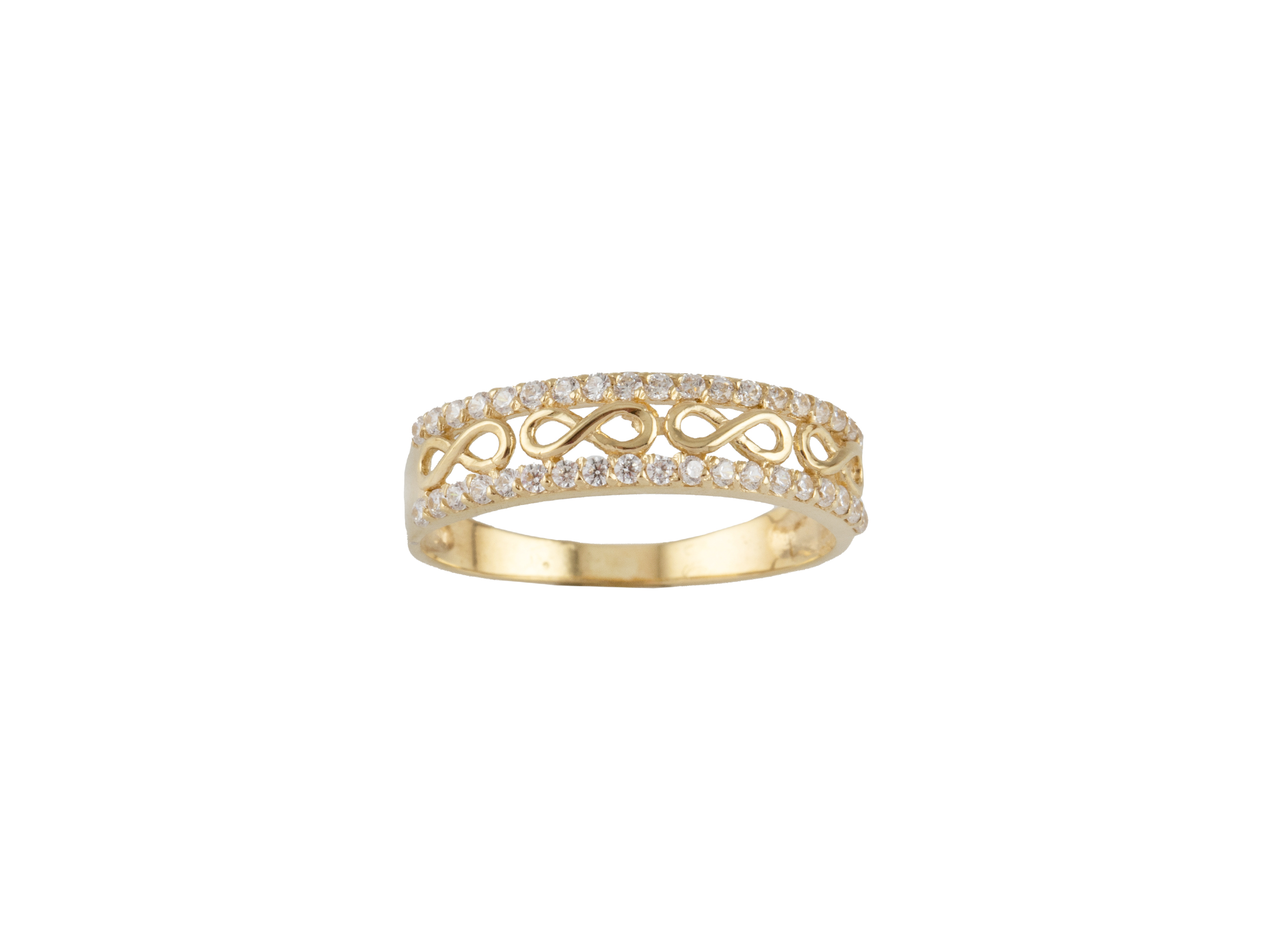 anillo oro 18k bandas circonitas con centro con inifinitos