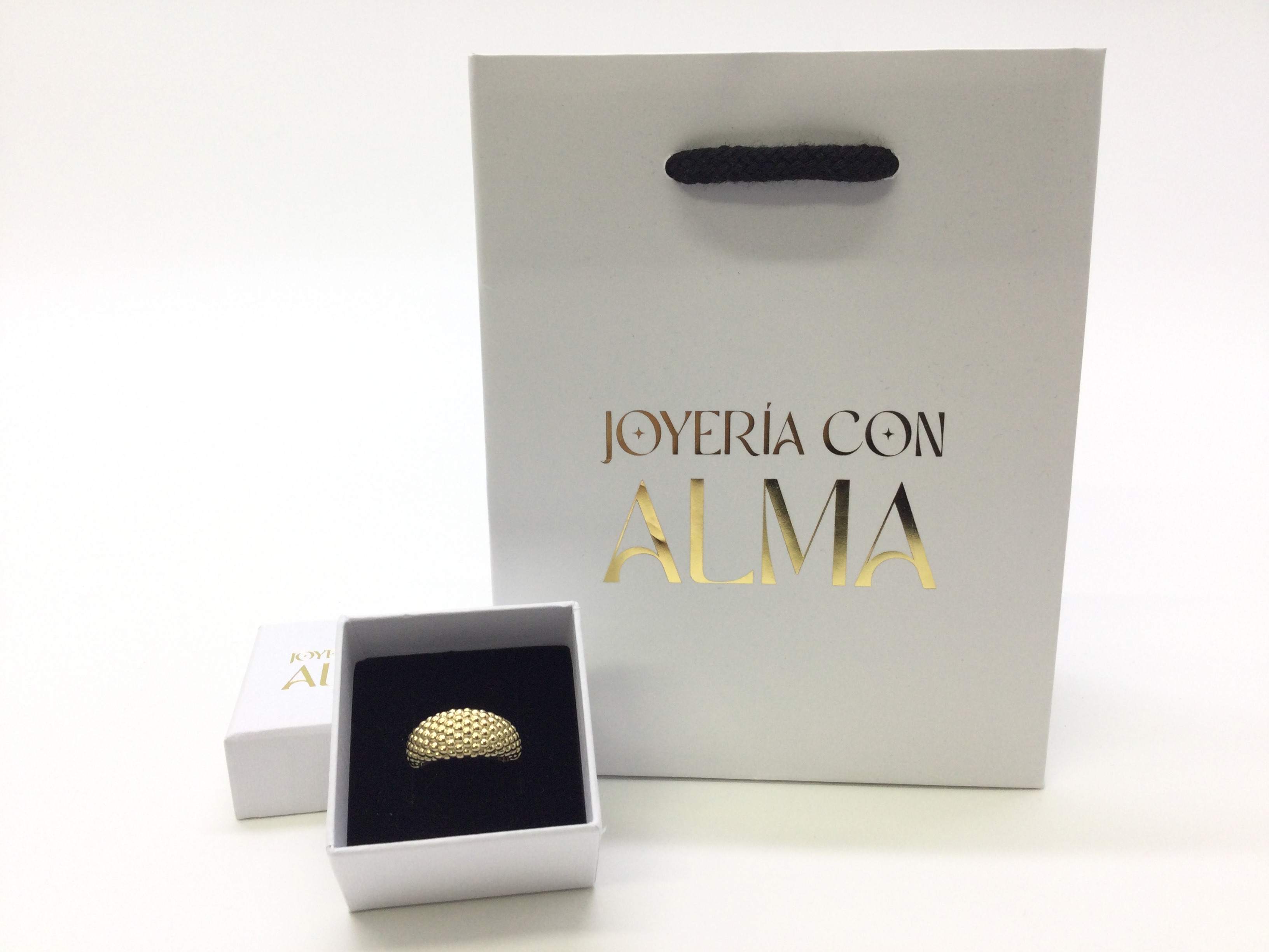 - detalles joya: ref.r550009 anillo oro 18kt bombee con bolitas relieve