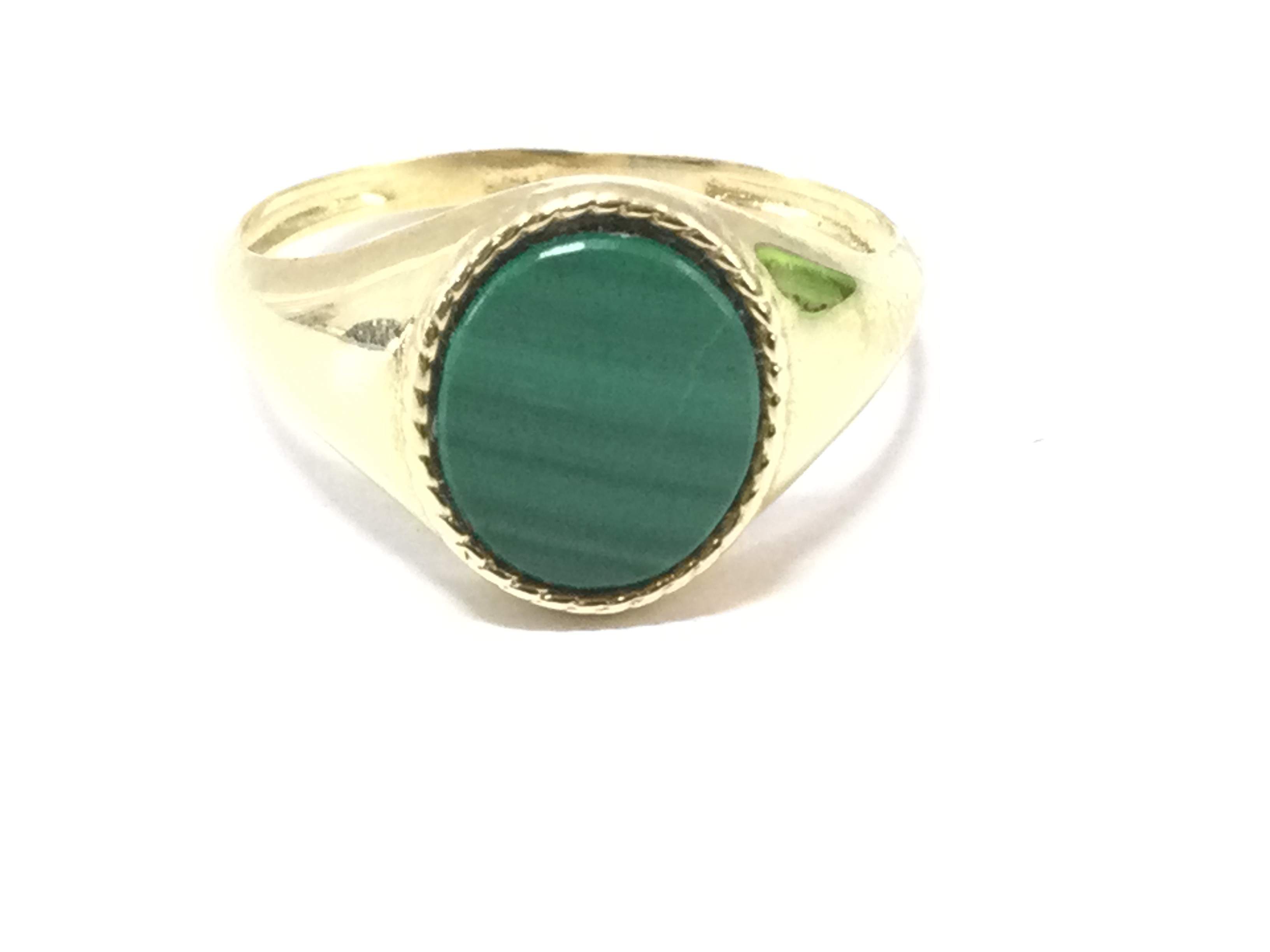 sello hombre oro 18kt con malaquita natural oval