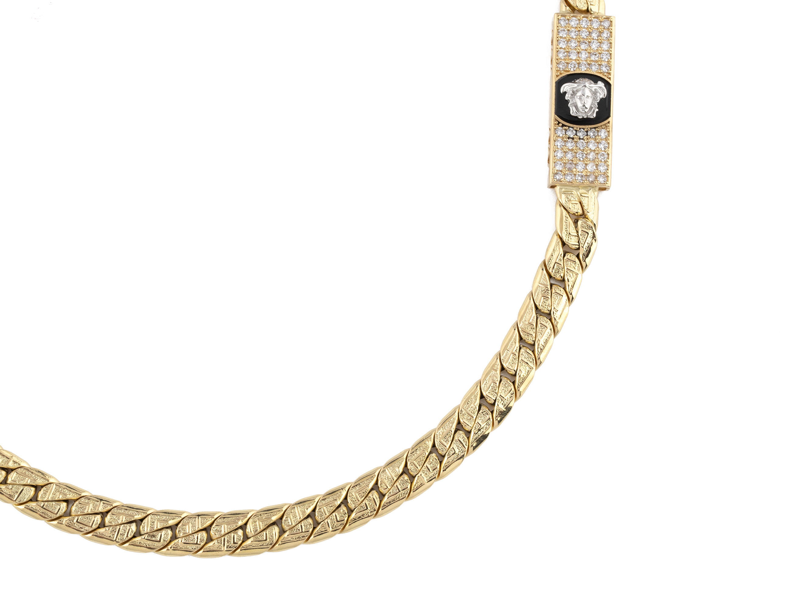 cadena hombre oro 18k eslabon lapidado medusa con circonitas