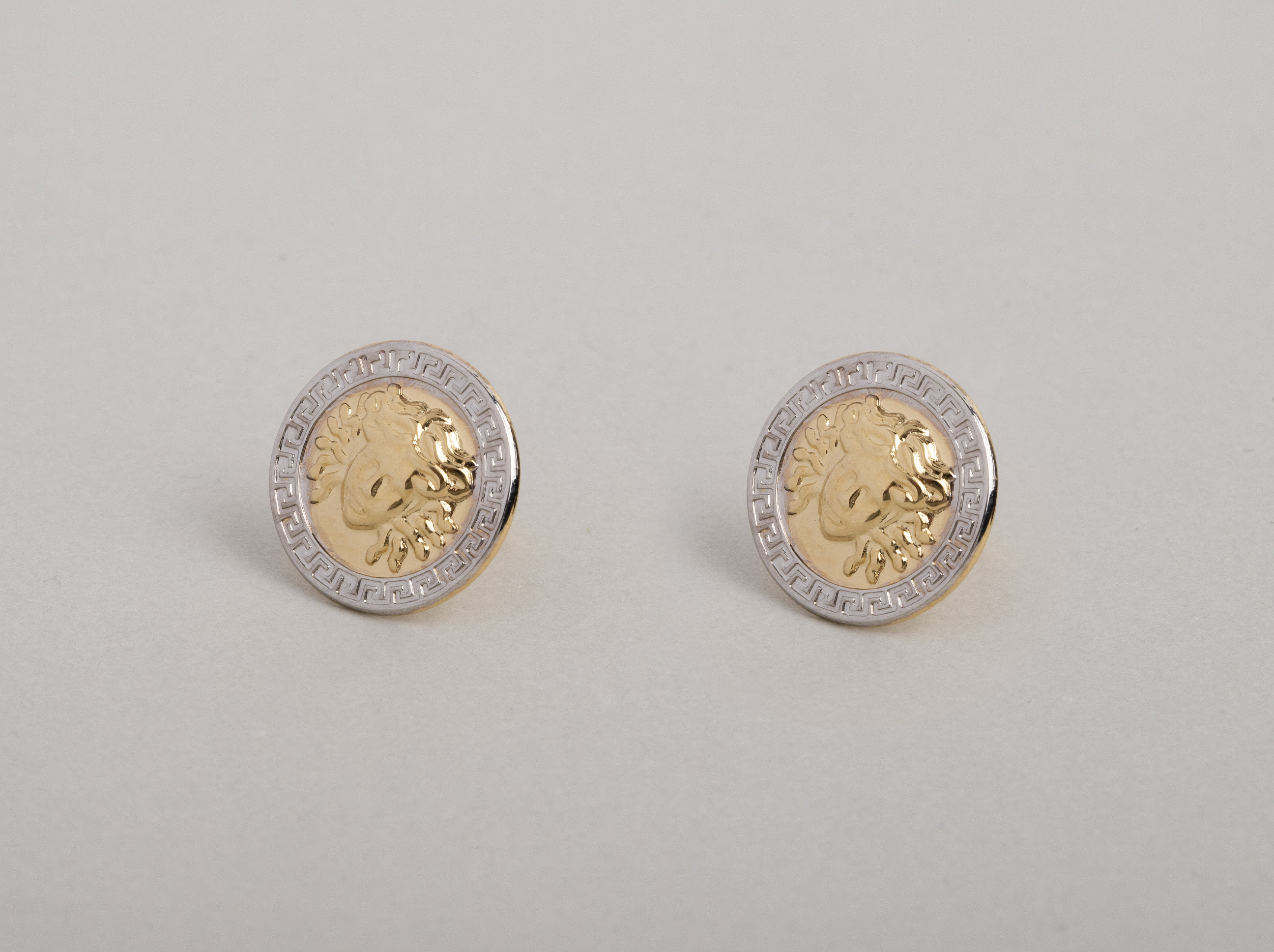 Pendientes Converters Pendientes oro bicolor 18k medusa con greca 12mm