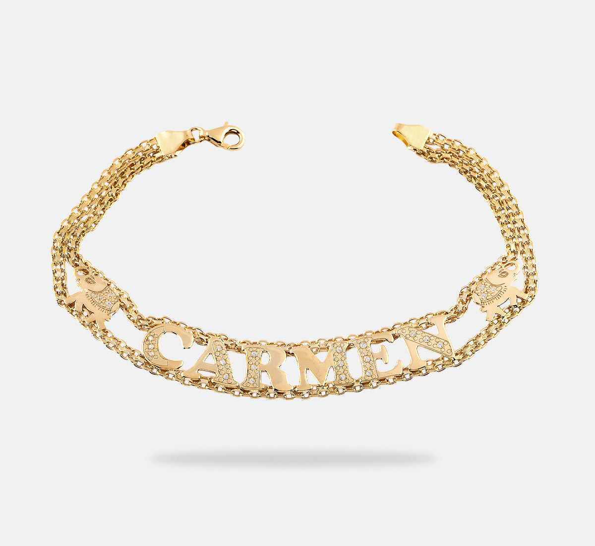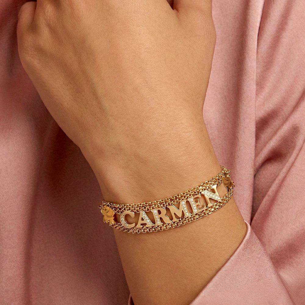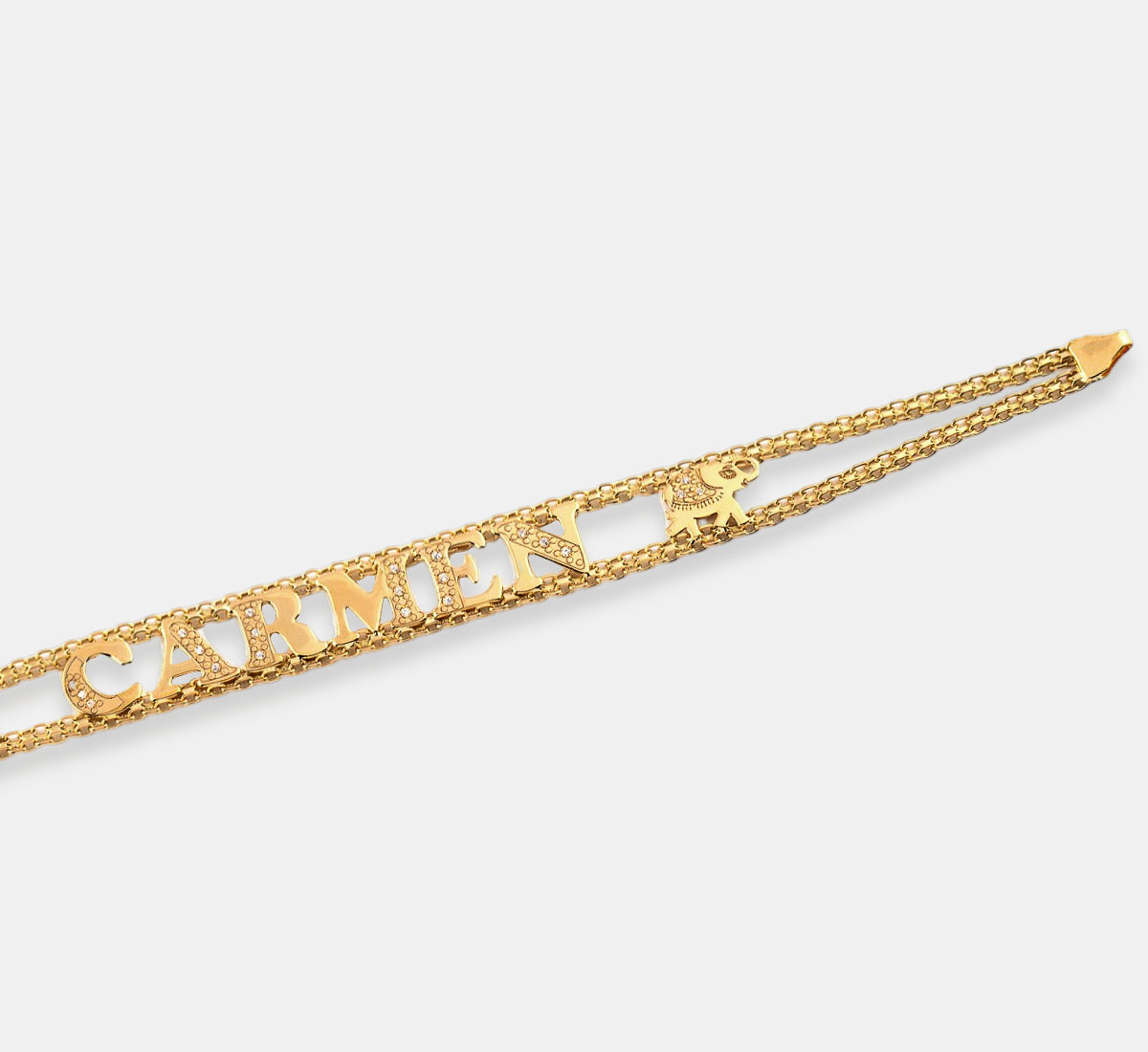 Pulsera Converters Pulsera de oro con elefantes, circonitas y nombre personalizada