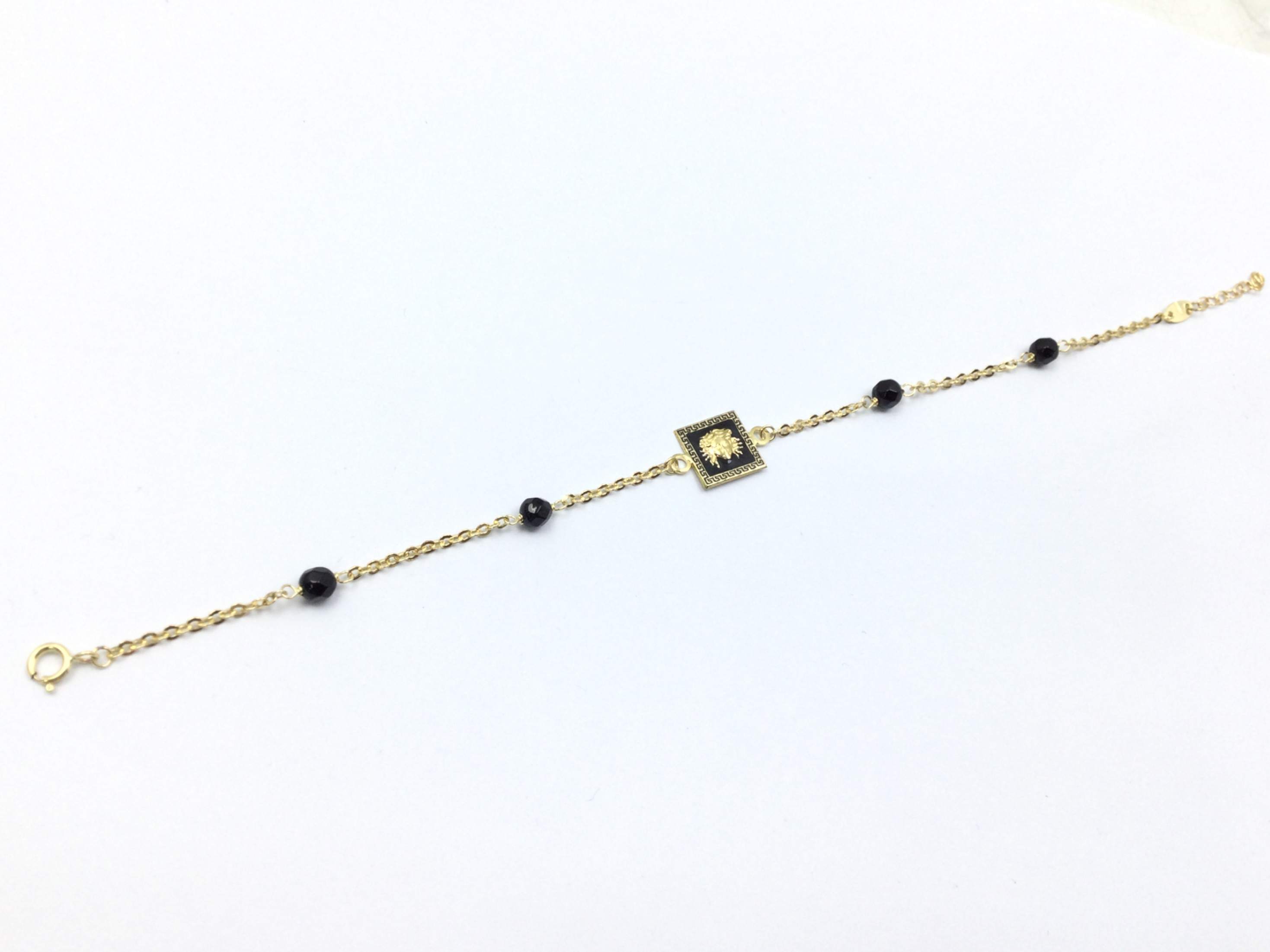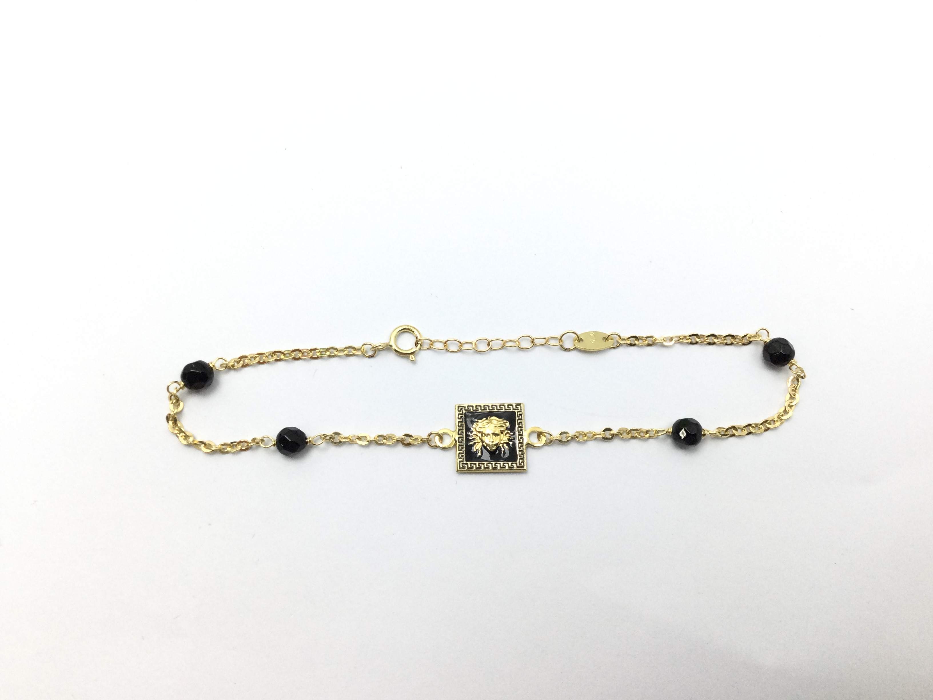 pulsera oro 18kt medusa cuadrada esmaltada con bolas onix 17cm