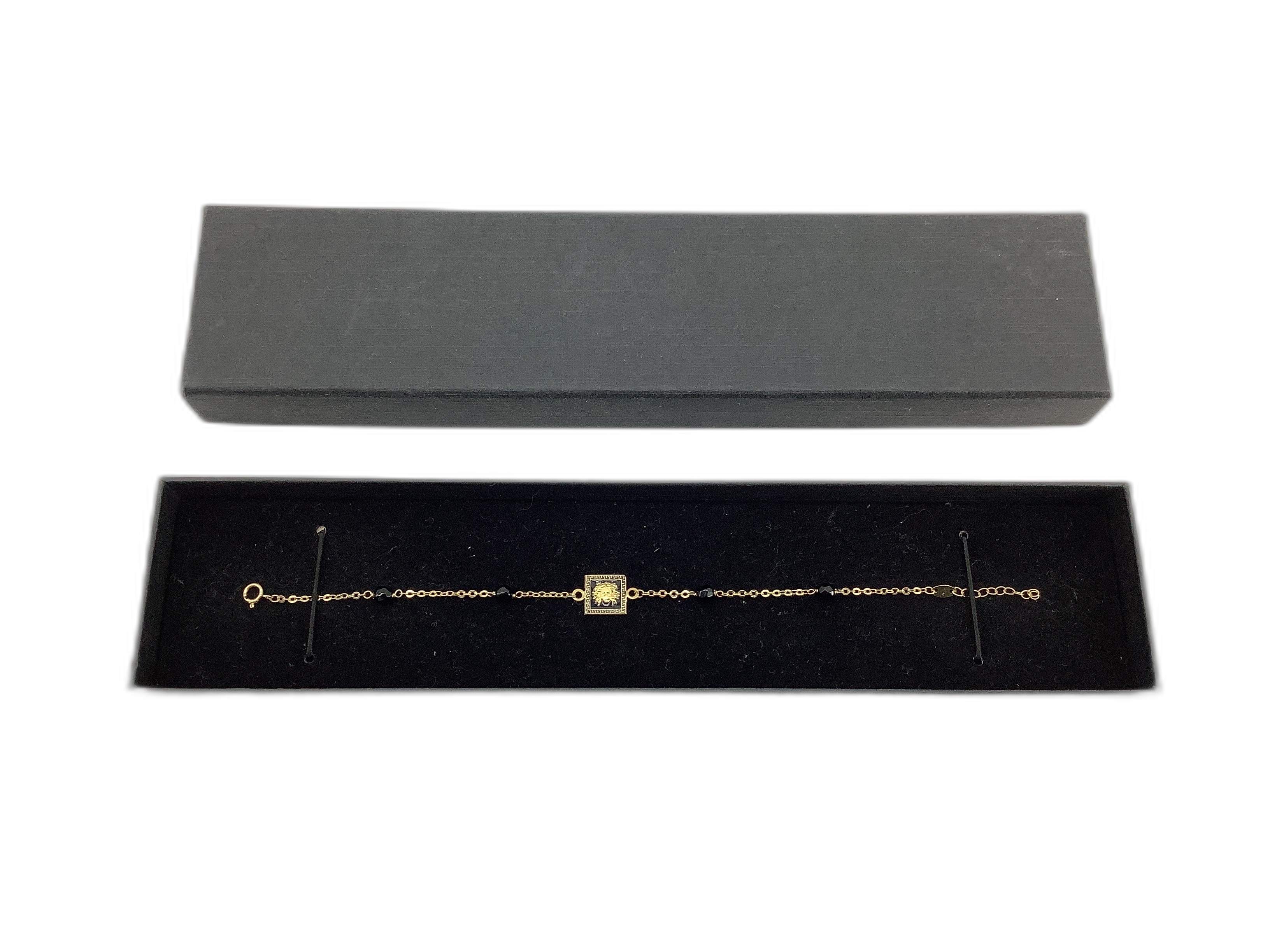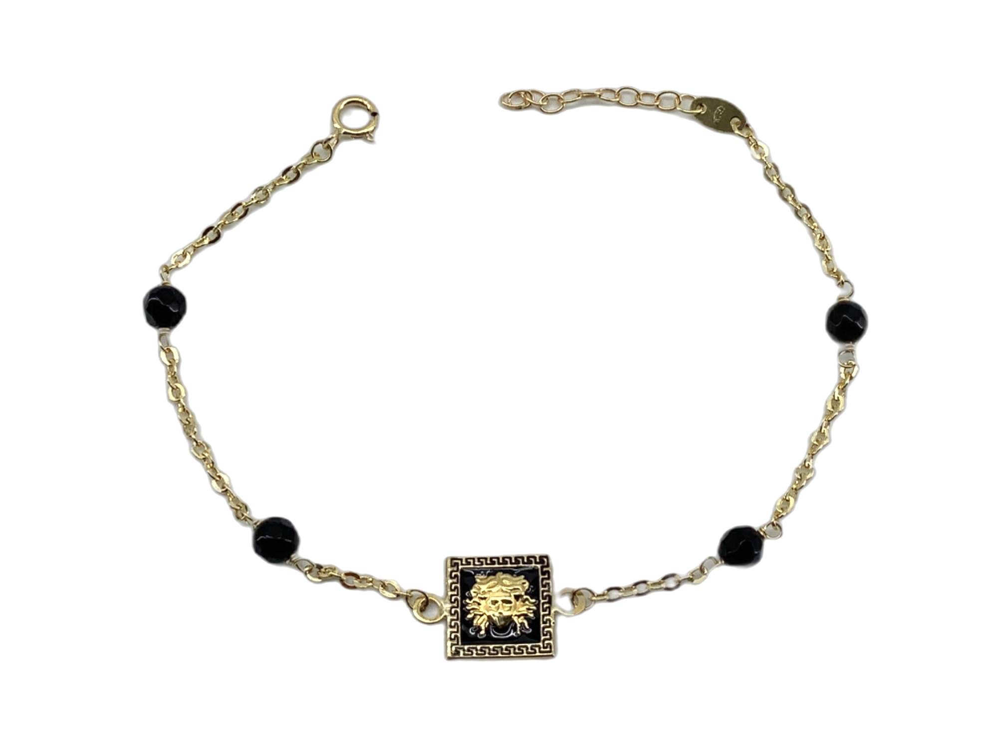 pulsera oro 18kt medusa cuadrada esmaltada con bolas onix 17cm