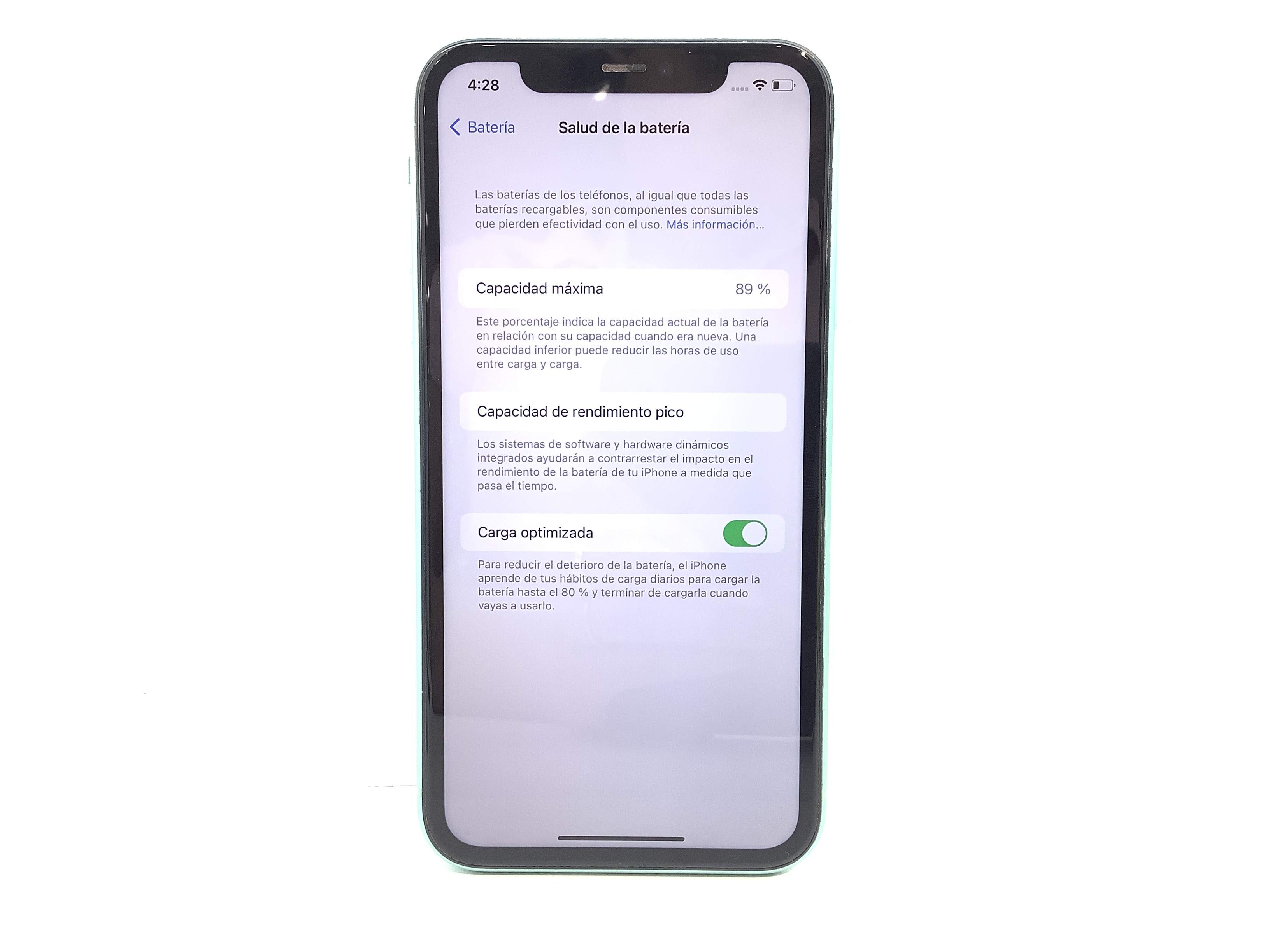 Revisamos la salud de la batería para asegurarnos de que esté por encima del mínimo aceptable. Siempre puedes consultar este dato antes de comprarlo.