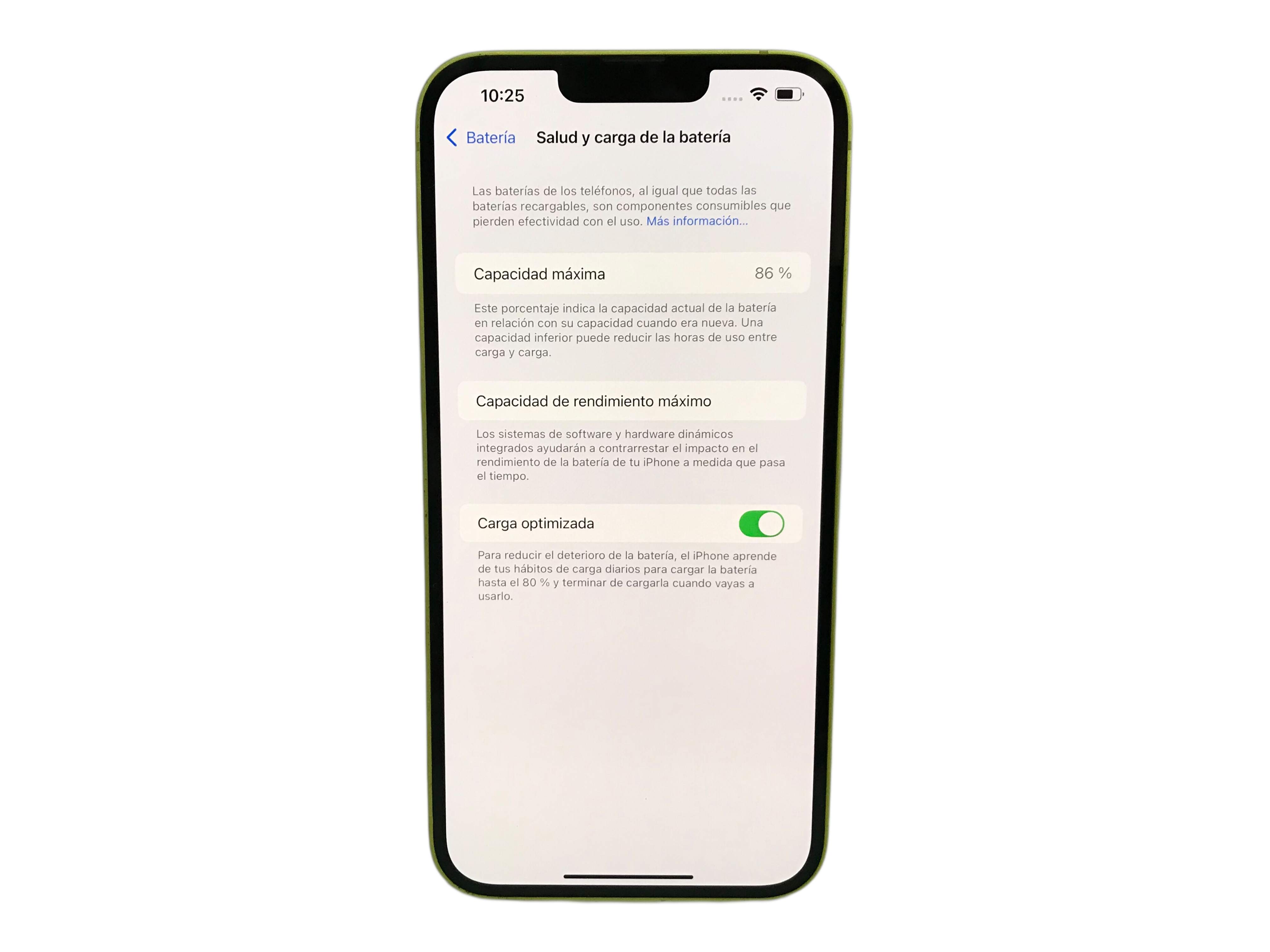- vida útil batería mayor del 80%: Sí