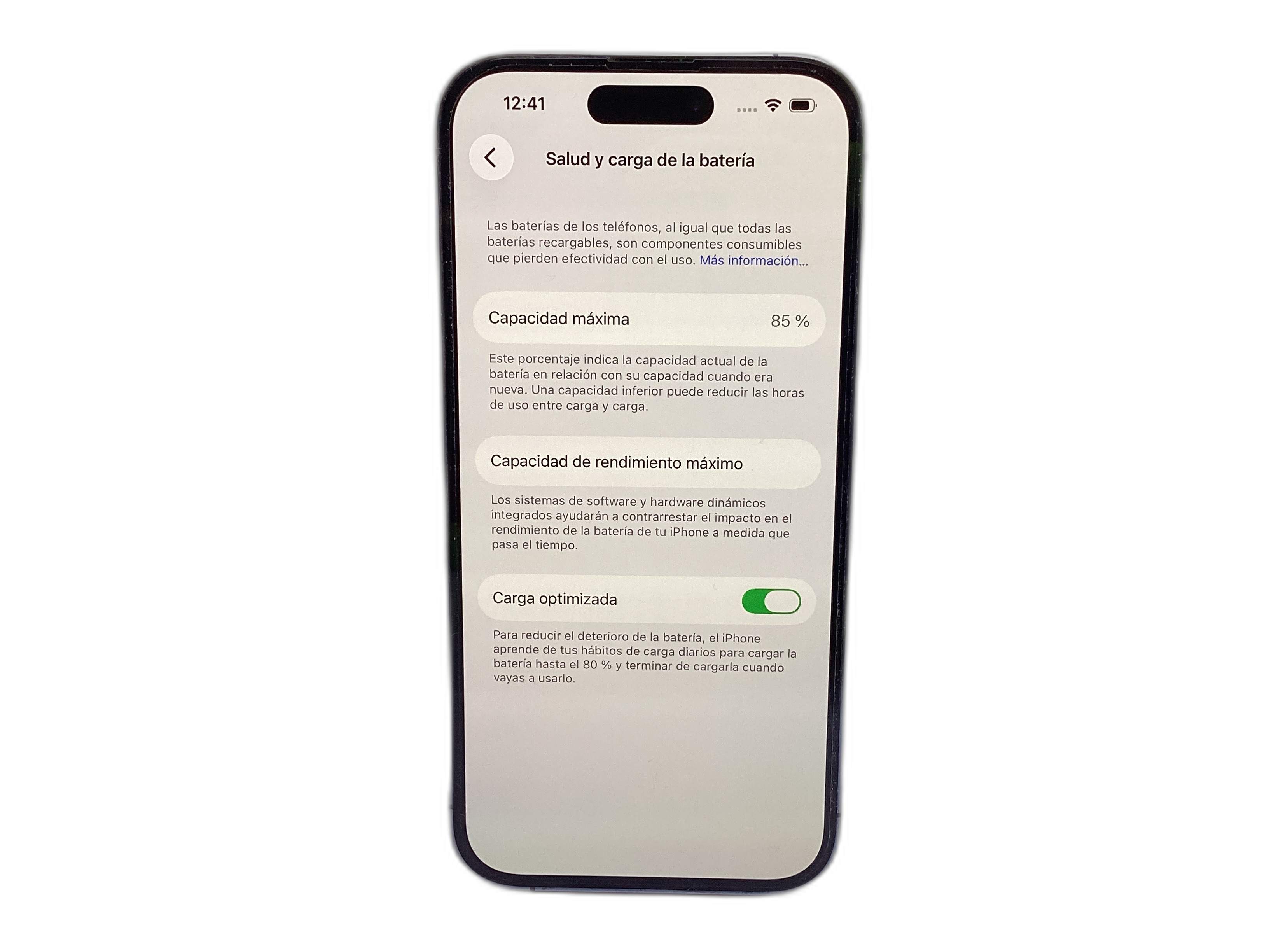 - vida útil batería mayor del 80%: Sí
