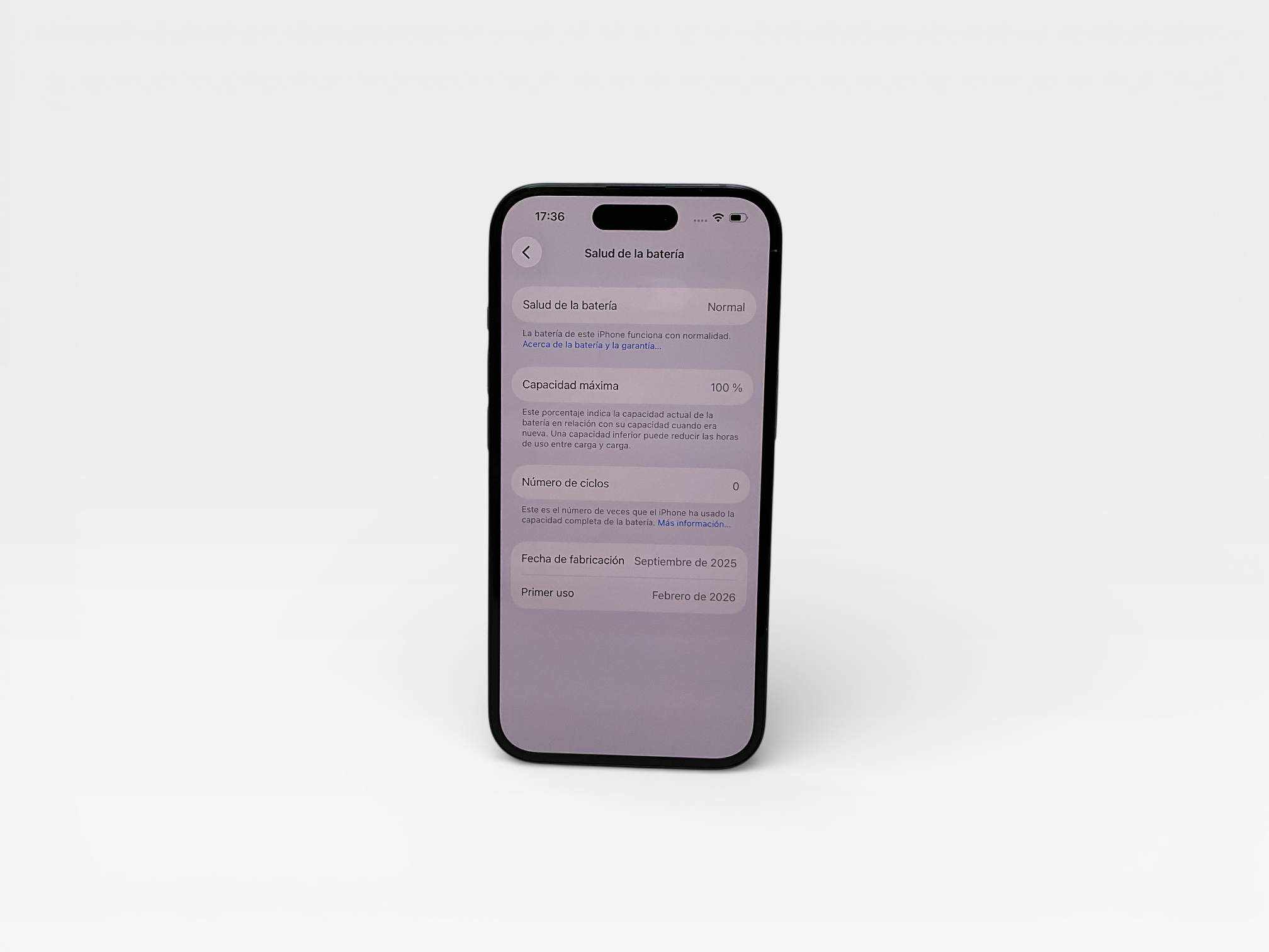 - informacion adicional: 0 ciclos de carga, batería al 100