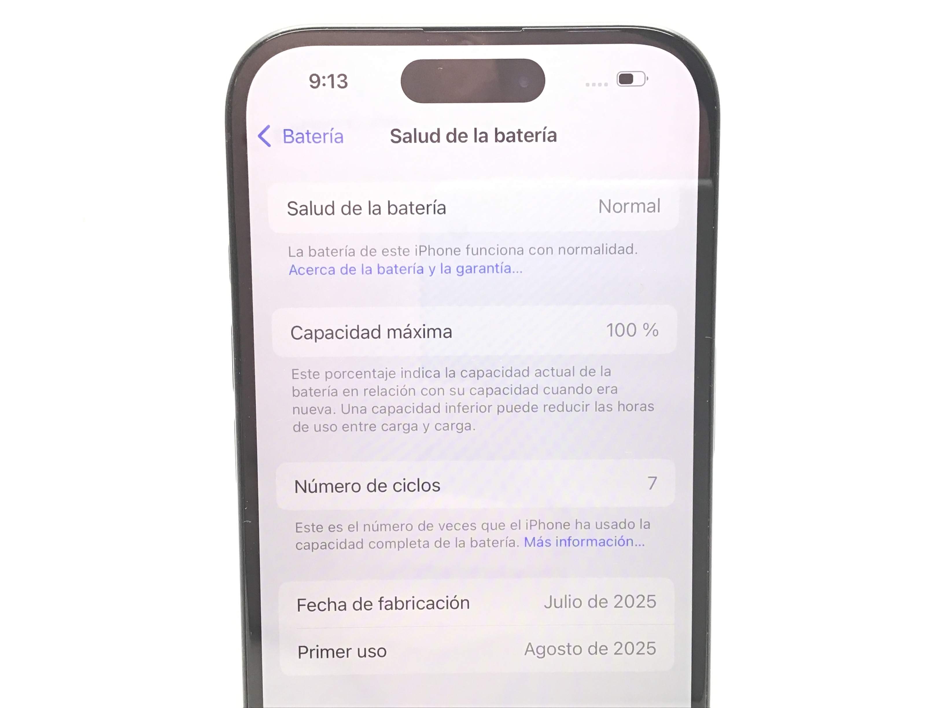 - vida útil batería mayor del 80%: Sí