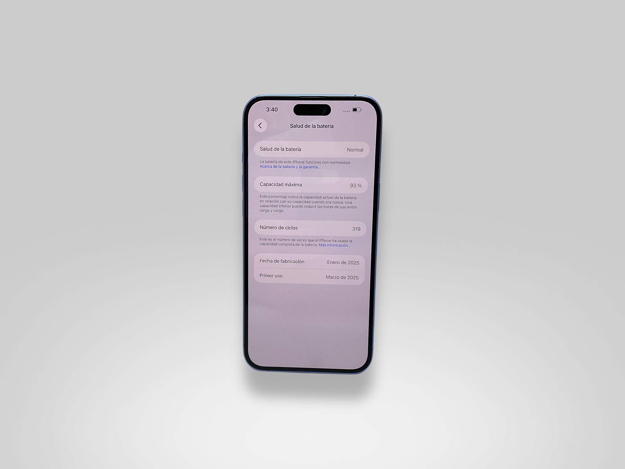 - vida útil batería mayor del 80%: Sí