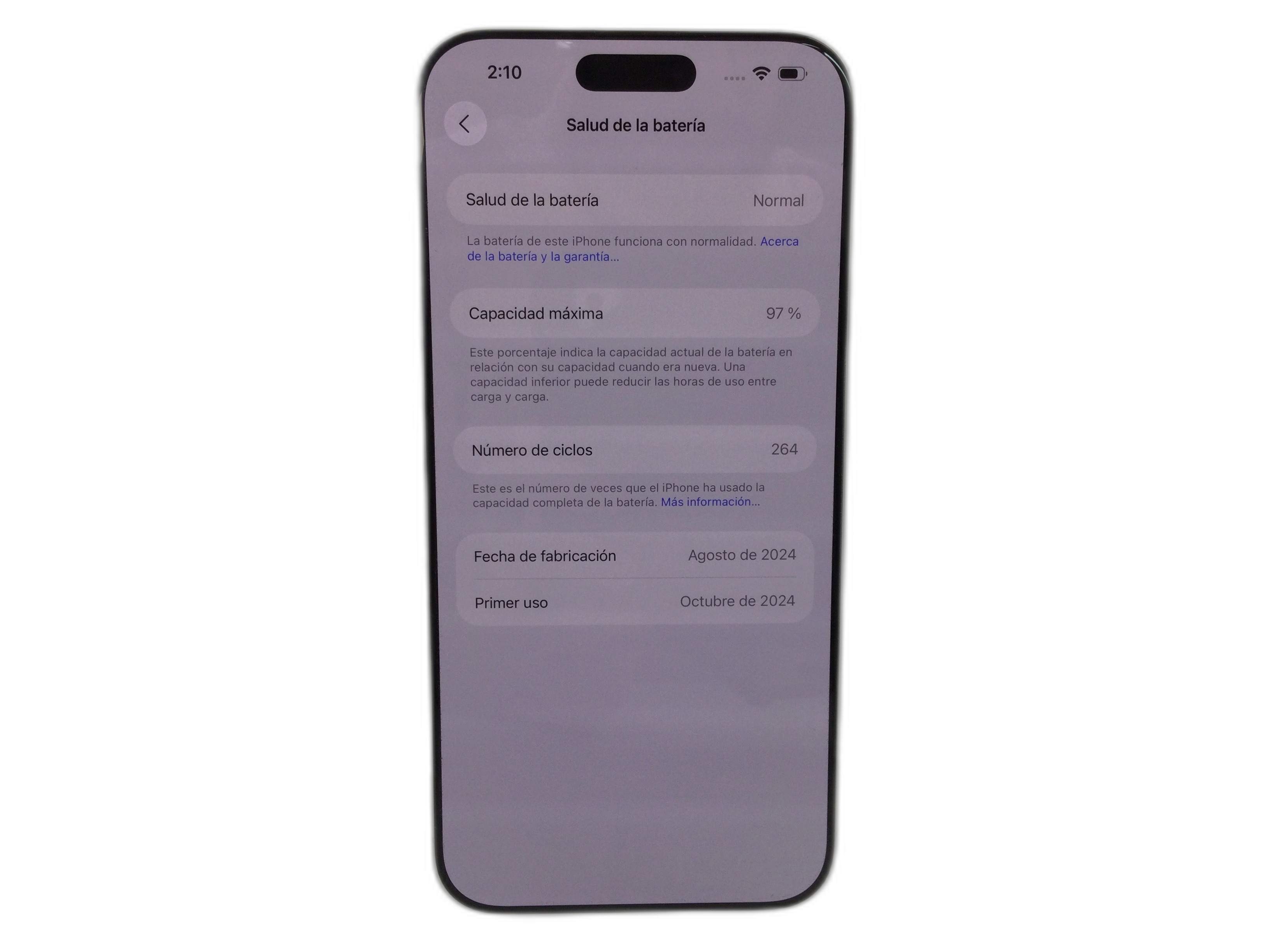 - vida útil batería mayor del 80%: Sí