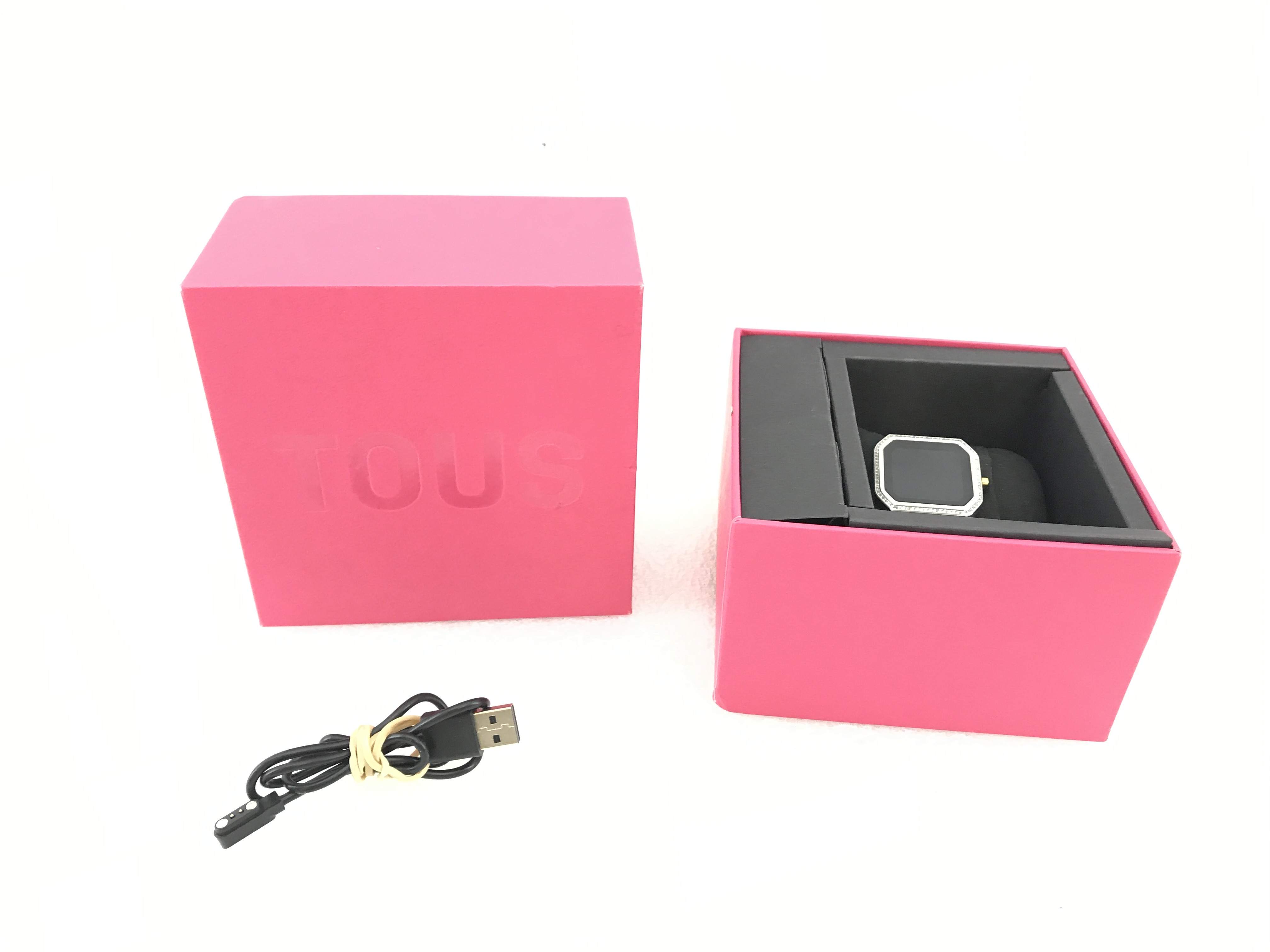 La caja original está incluida, lo que contribuye a la preservación y protección del smartwatch. En general, el TOUS B-CONNECT SMARTWATCH es una opción atractiva para quien busca un reloj inteligente de segunda mano, con funcionalidades esenciales y buena apariencia.
