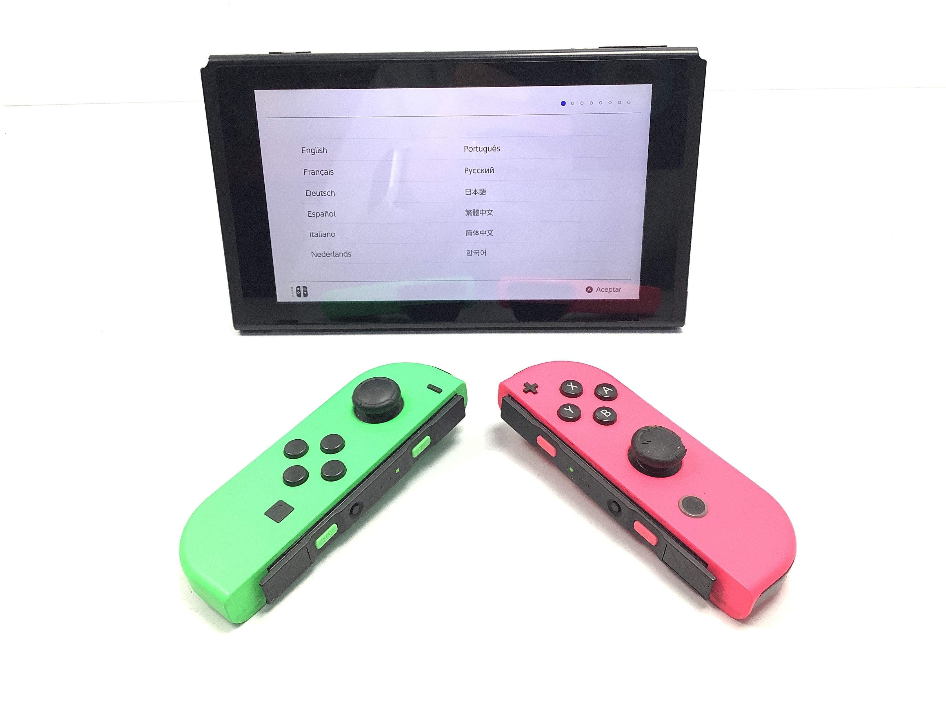 - informacion adicional: signos de uso no apreciable en las imágenes. almohadilla mando rosa deteriorada perceptible en la imagen 8 y 9. incluye caja, mandos, cargador americano con adaptador europeo y dock. no incluye joycon grip y joycon strap.