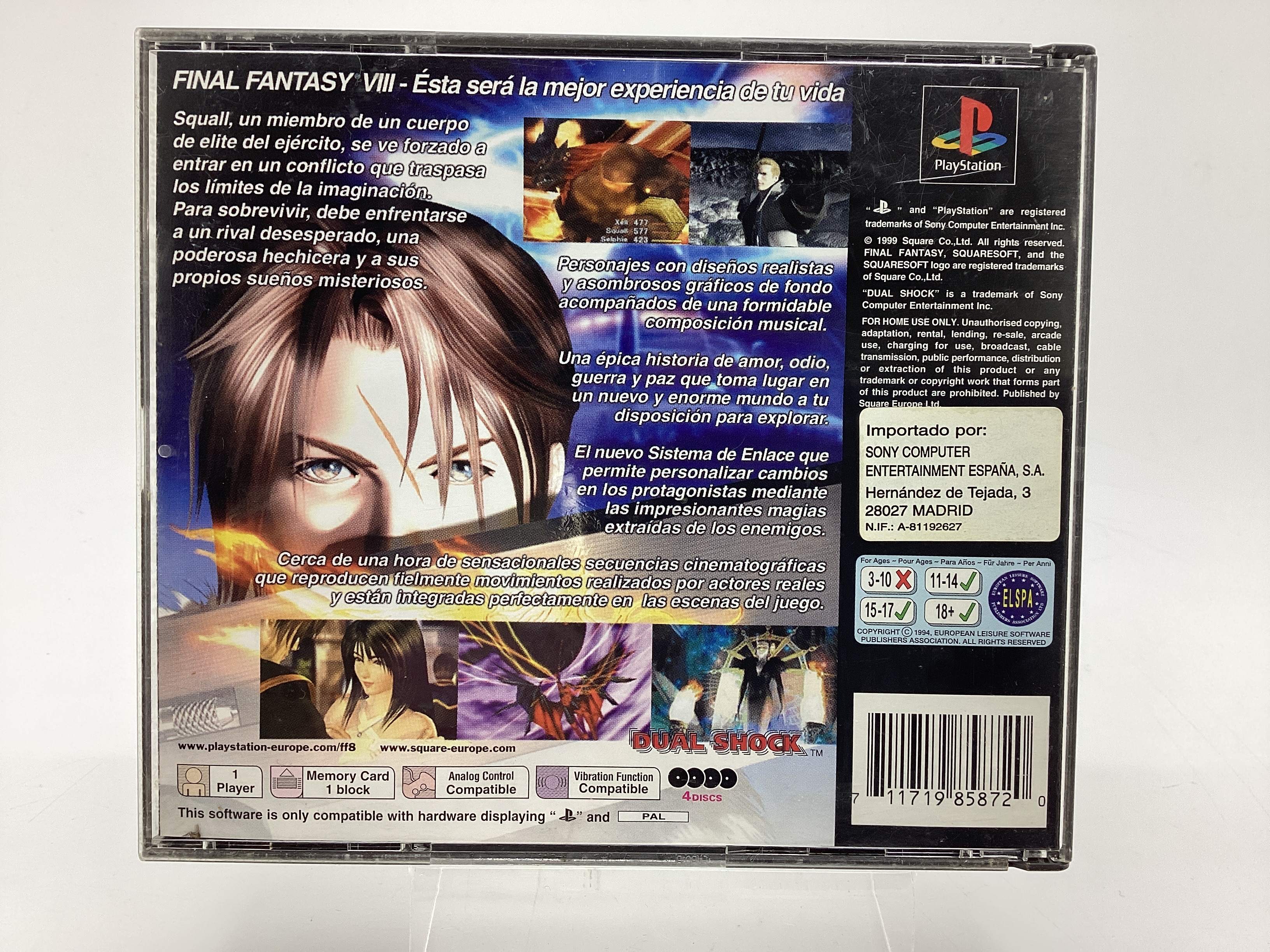 Final fantasy viii ps1 es un objeto de segunda mano que se ofrece en estado Usado. Cómpralo al Mejor Precio Solo en Cash Converters. El objeto funciona perfectamente, tiene garantía y te lo trasladamos por correo aproximadamente en 72 horas.