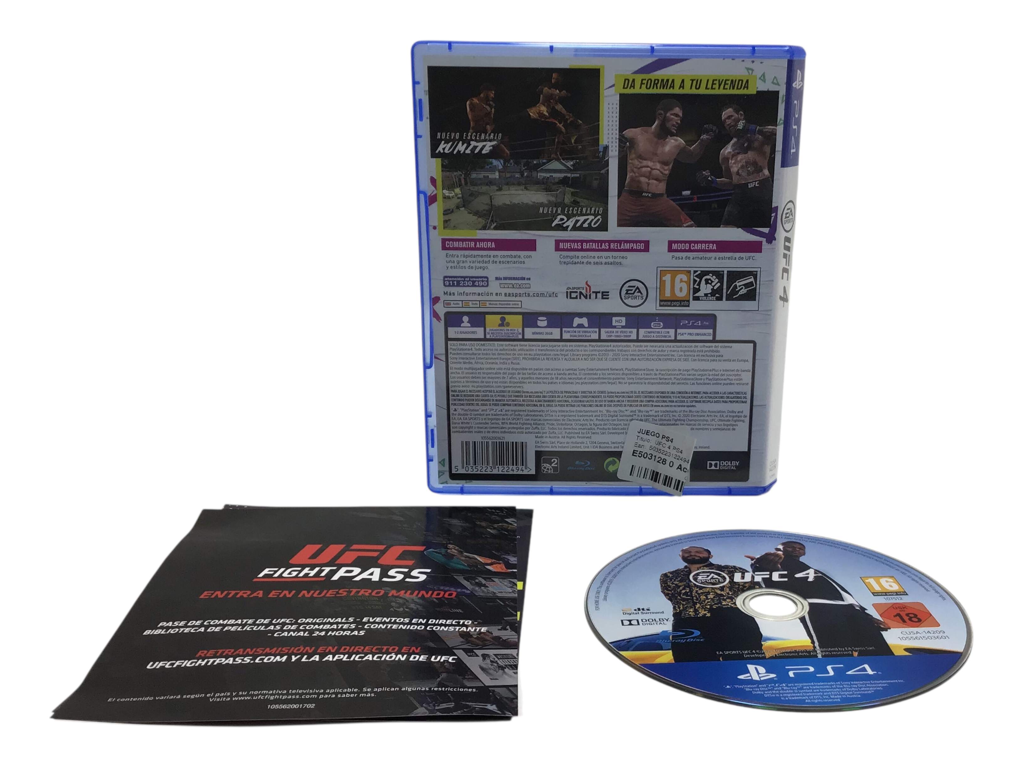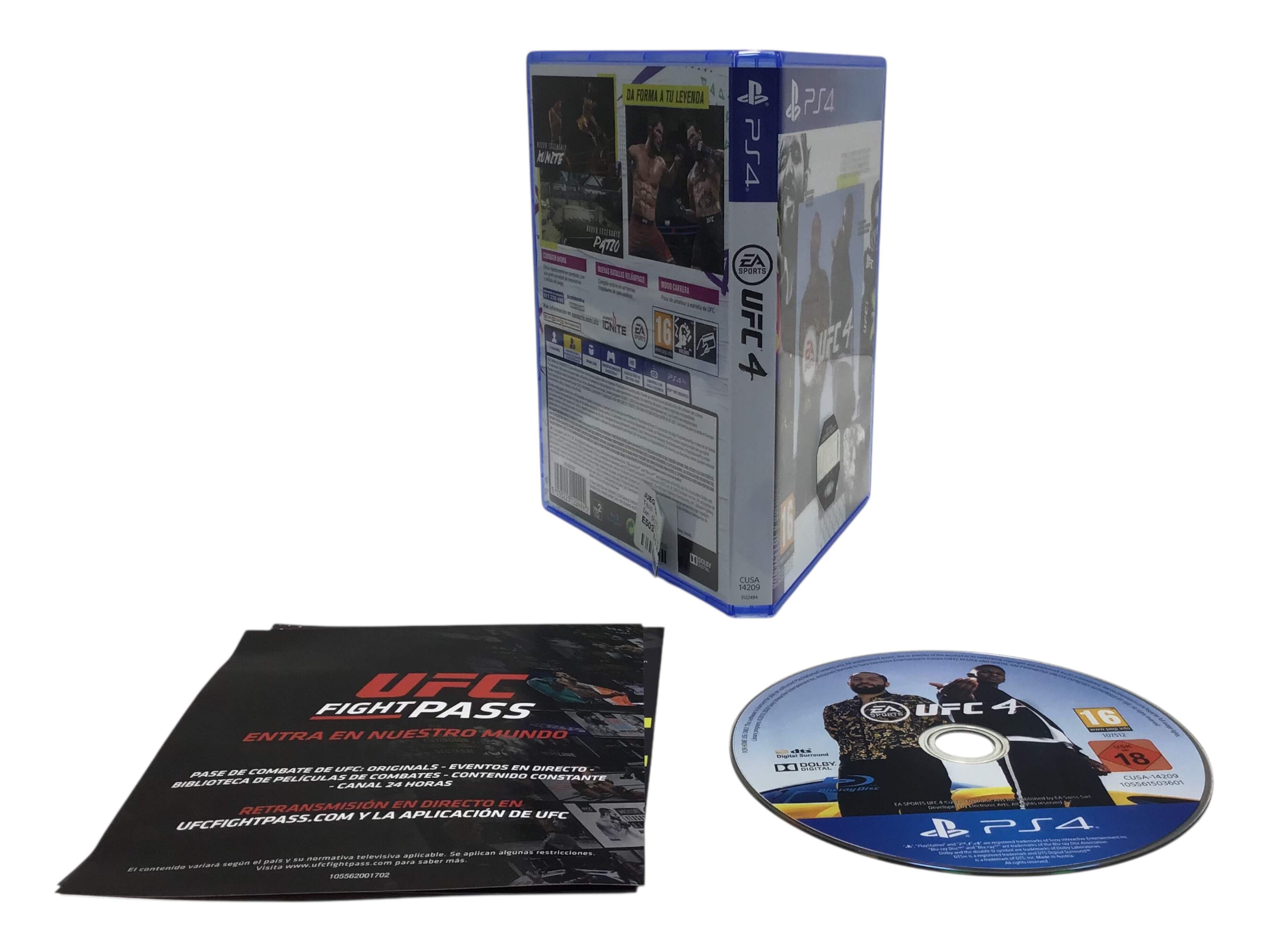 Ufc 4 ps4 es un objeto de segunda mano que se ofrece en estado Usado. Cómpralo al Mejor Precio Solo en Cash Converters. El objeto funciona perfectamente, tiene garantía y te lo trasladamos por correo aproximadamente en 72 horas.