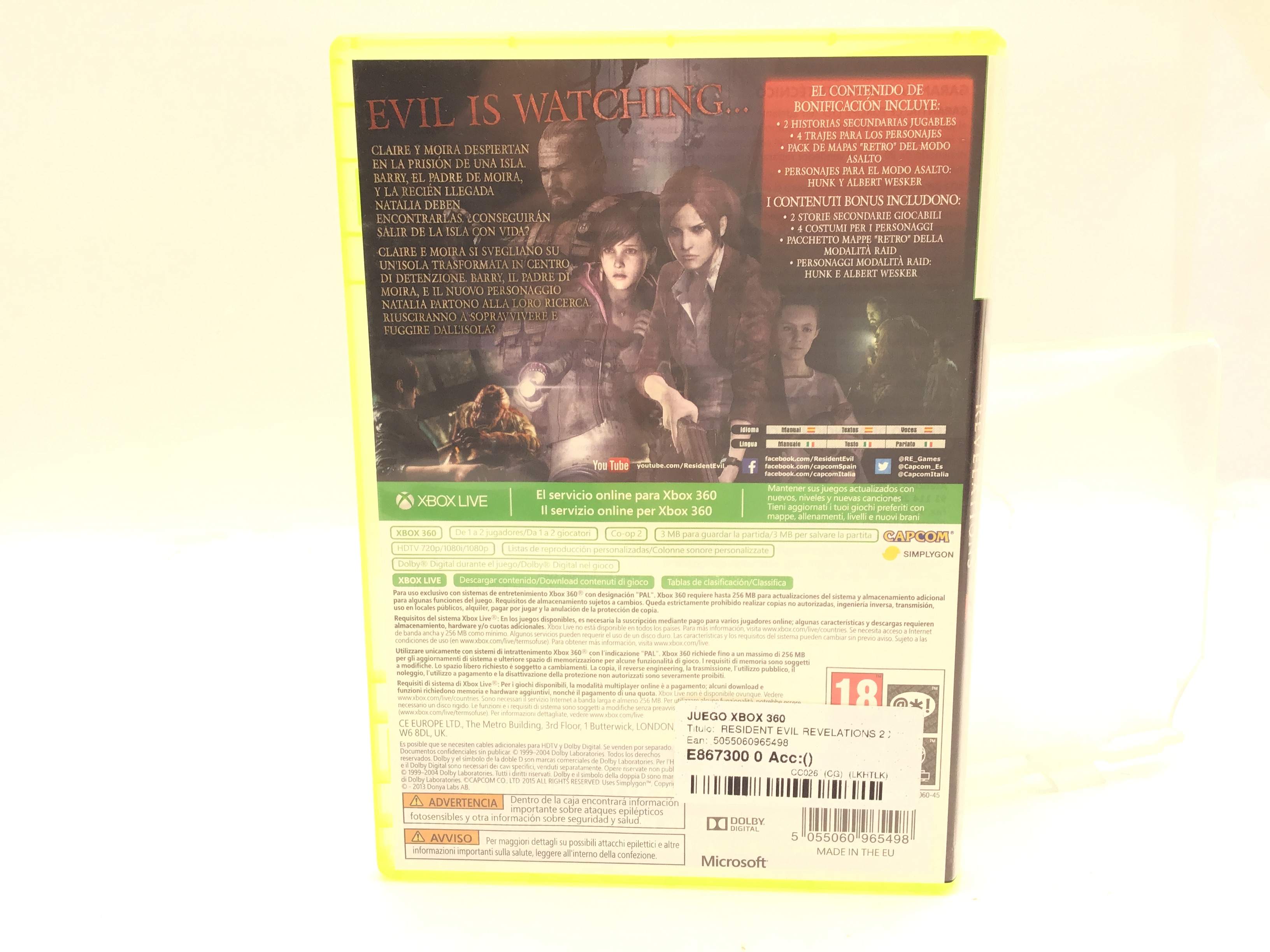 Resident evil revelations 2 x360 es un objeto de segunda mano que se ofrece en estado Bueno. Cómpralo al Mejor Precio Solo en Cash Converters. El objeto funciona perfectamente, tiene garantía y te lo trasladamos por correo aproximadamente en 72 horas.