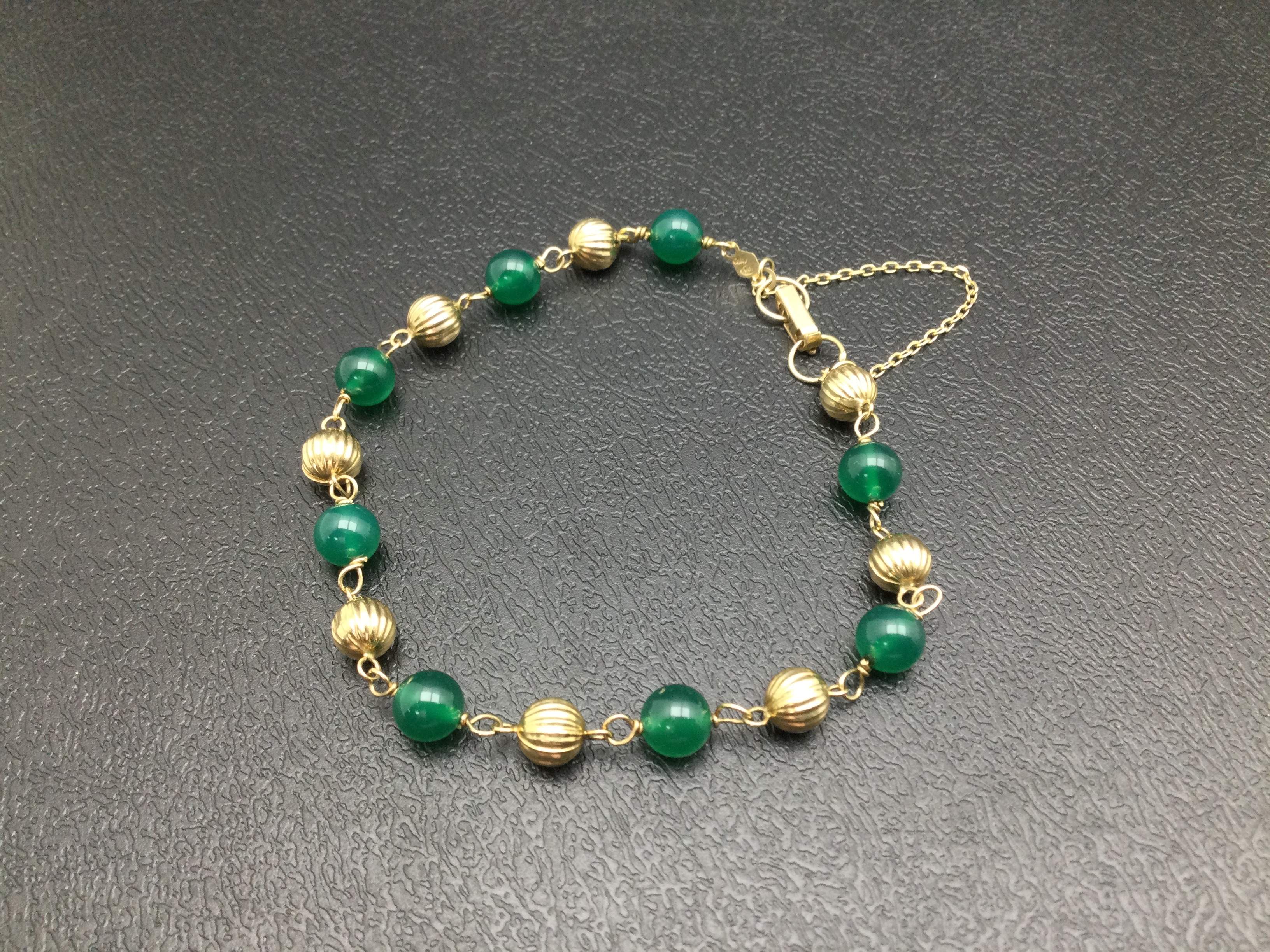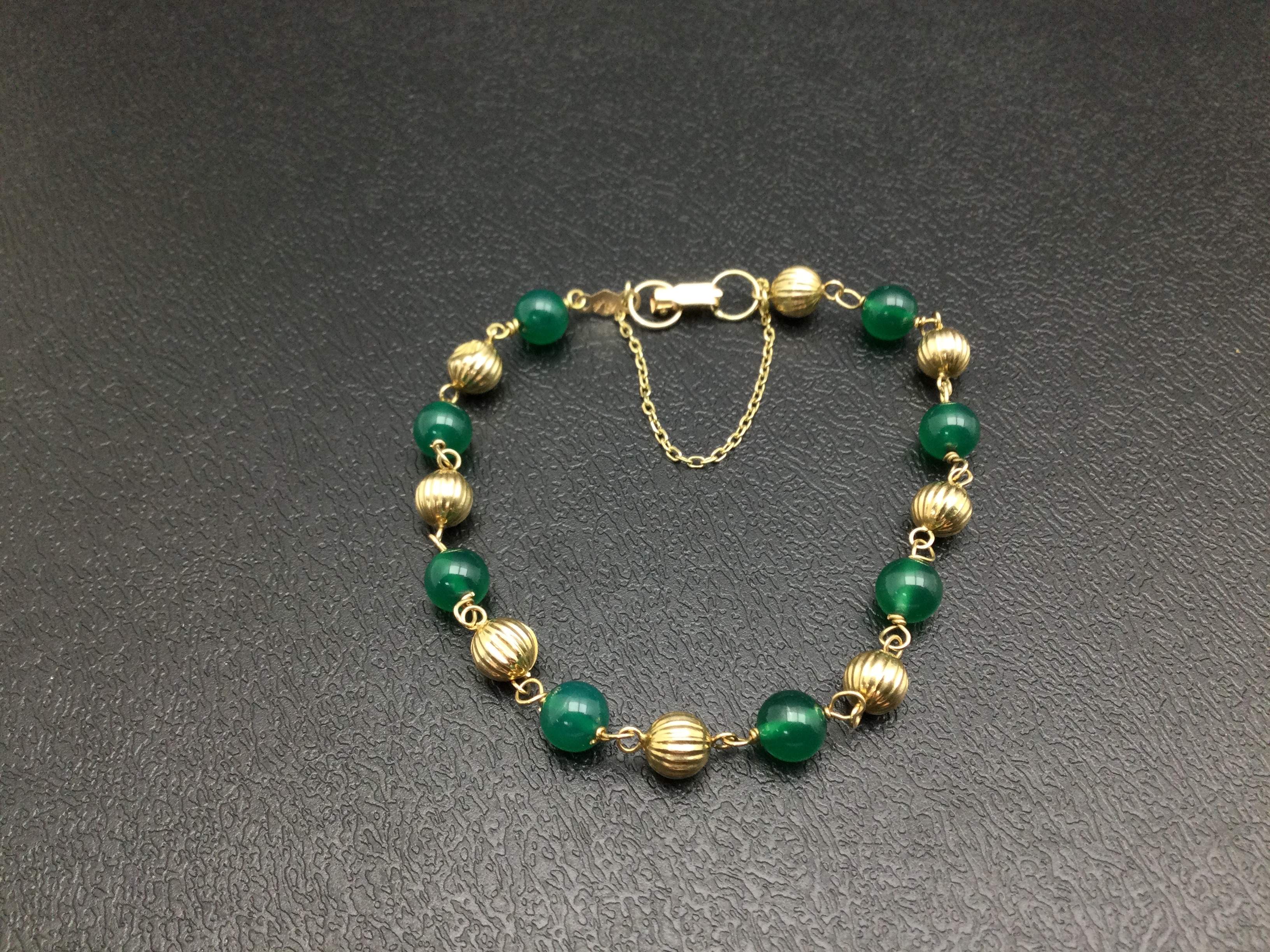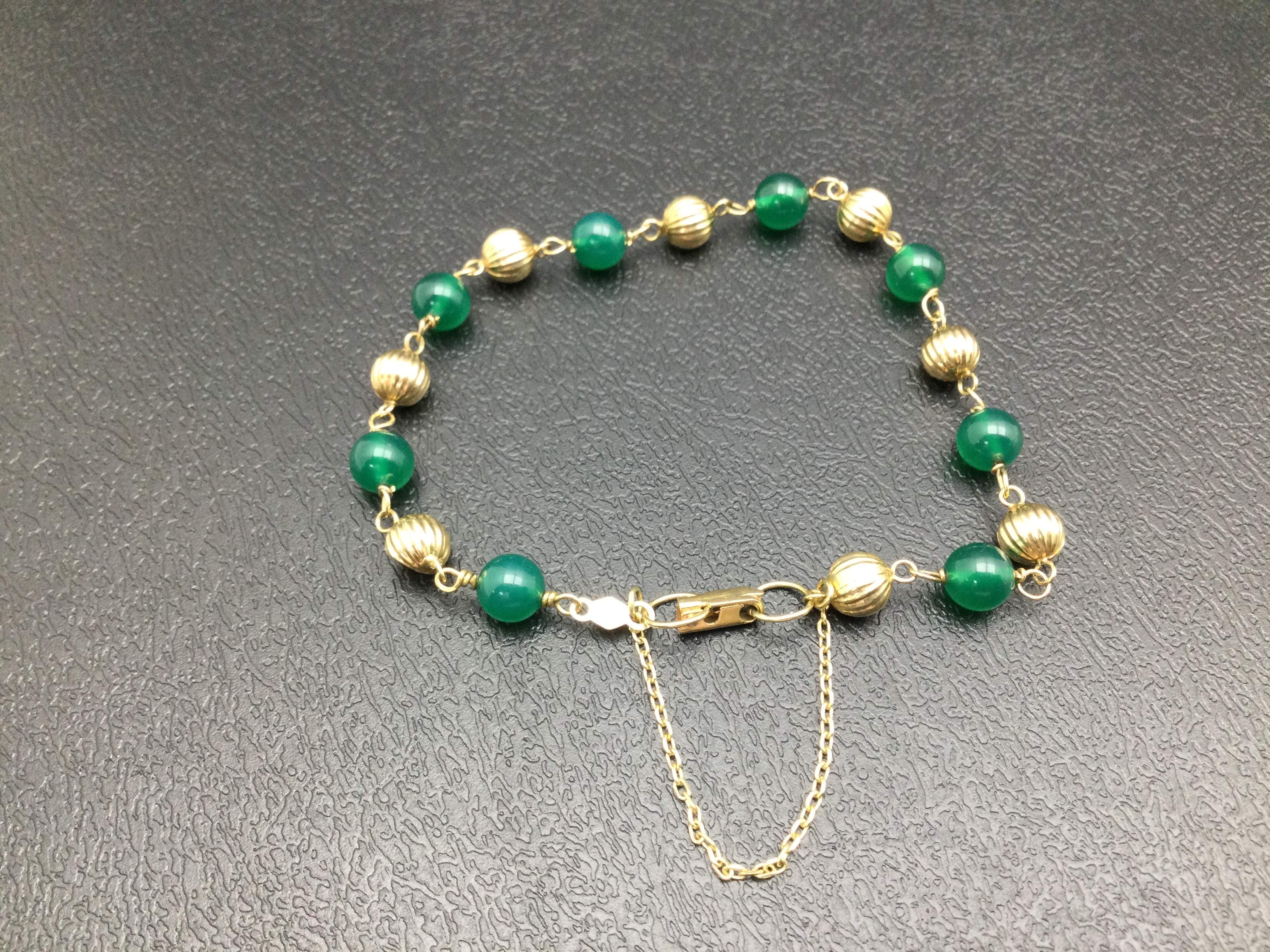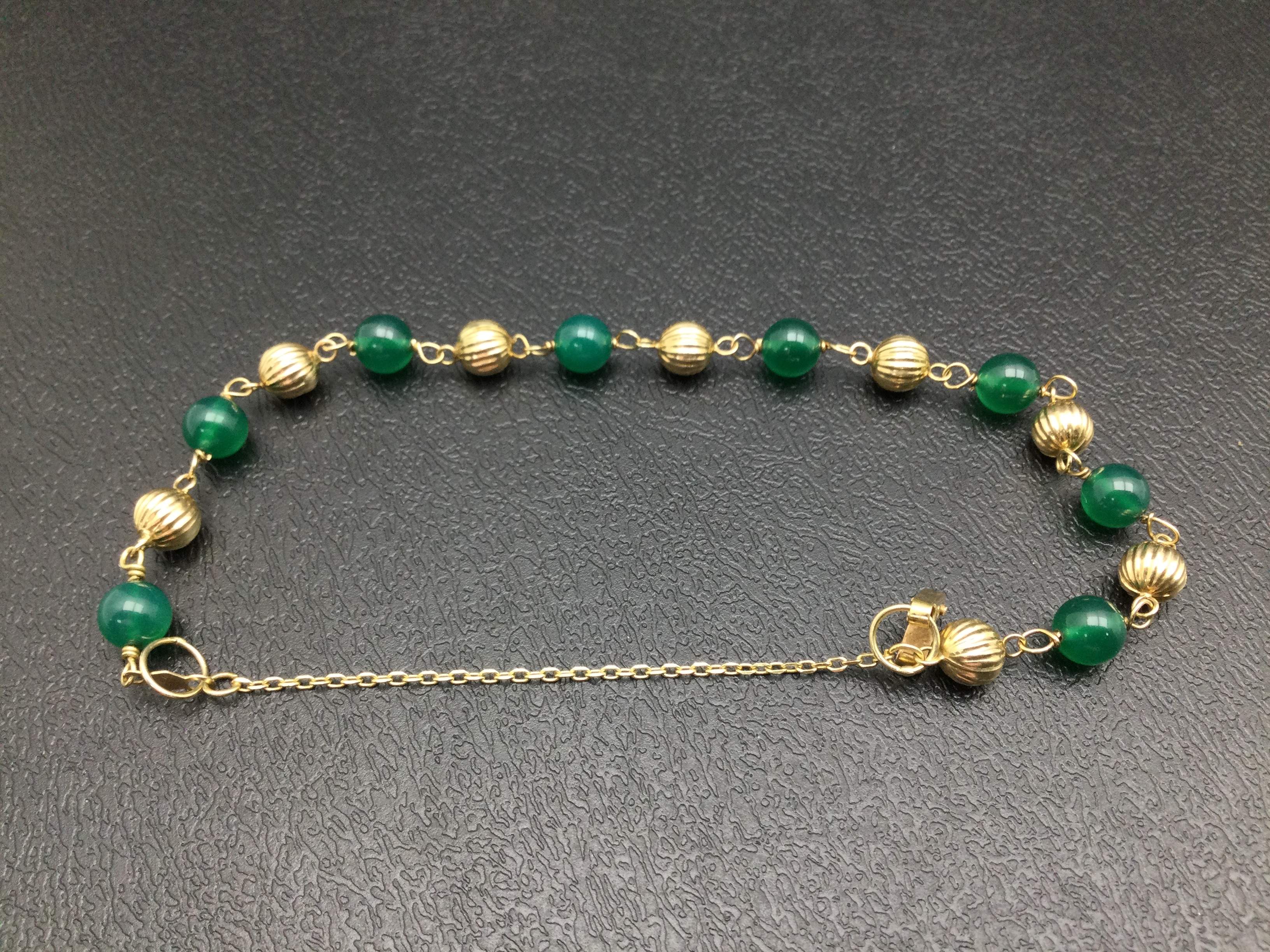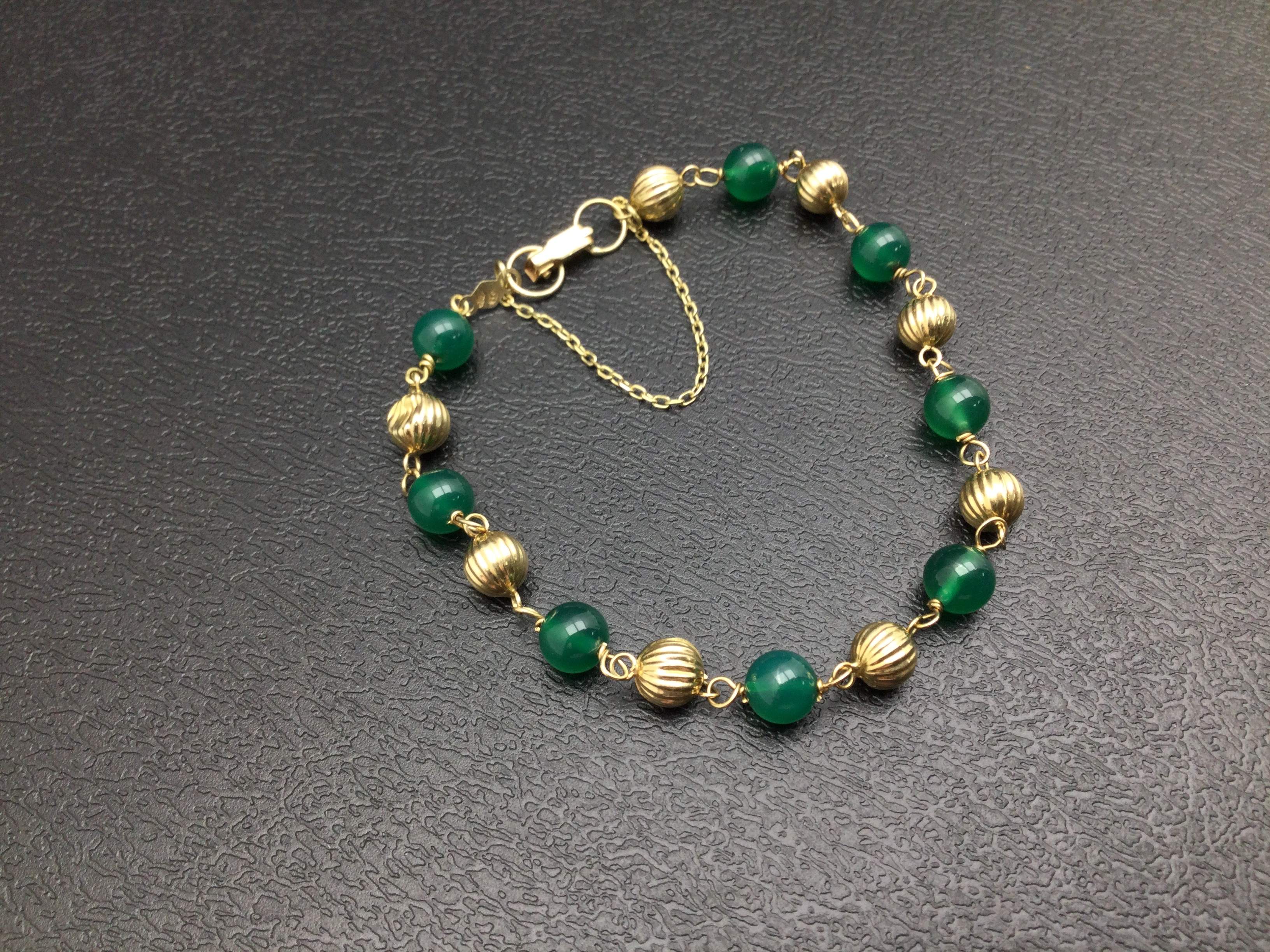 - detalles joya: pulsera o/am con contraste con bolas 8 verdes y 8 de oro