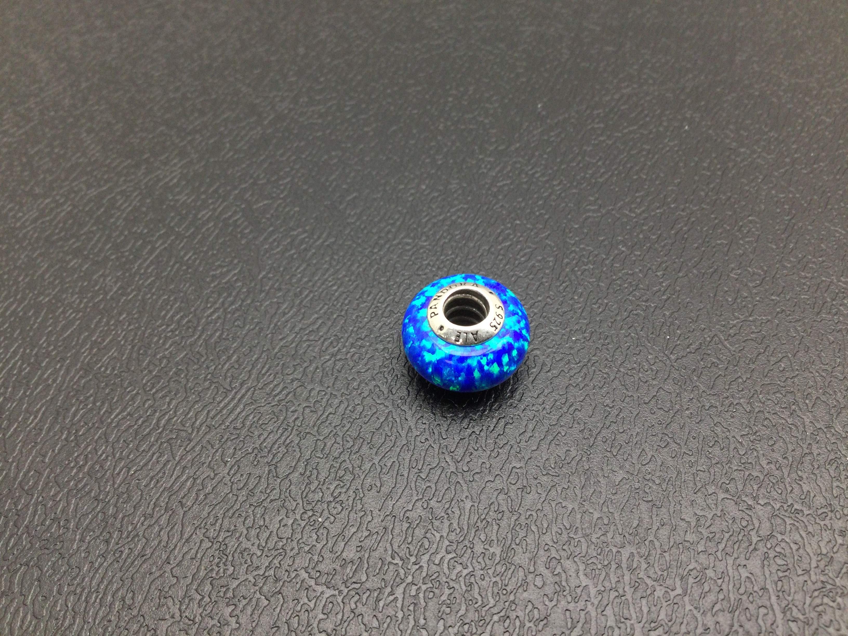 - detalles joya: abalorio con sello de ale 925 y rodeado piedra azul